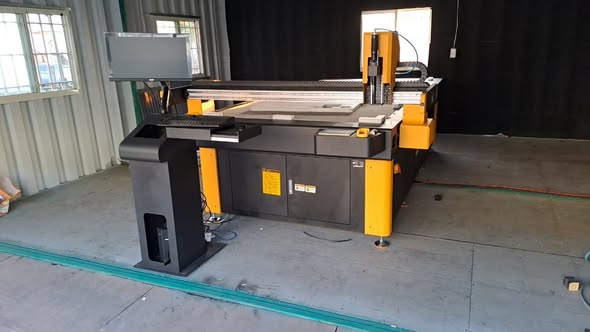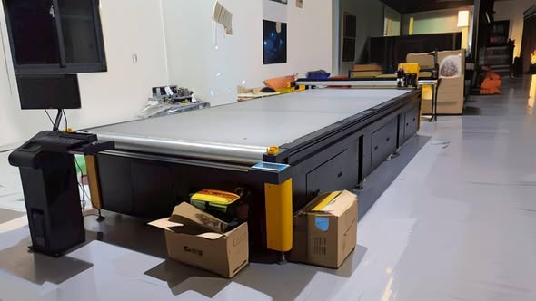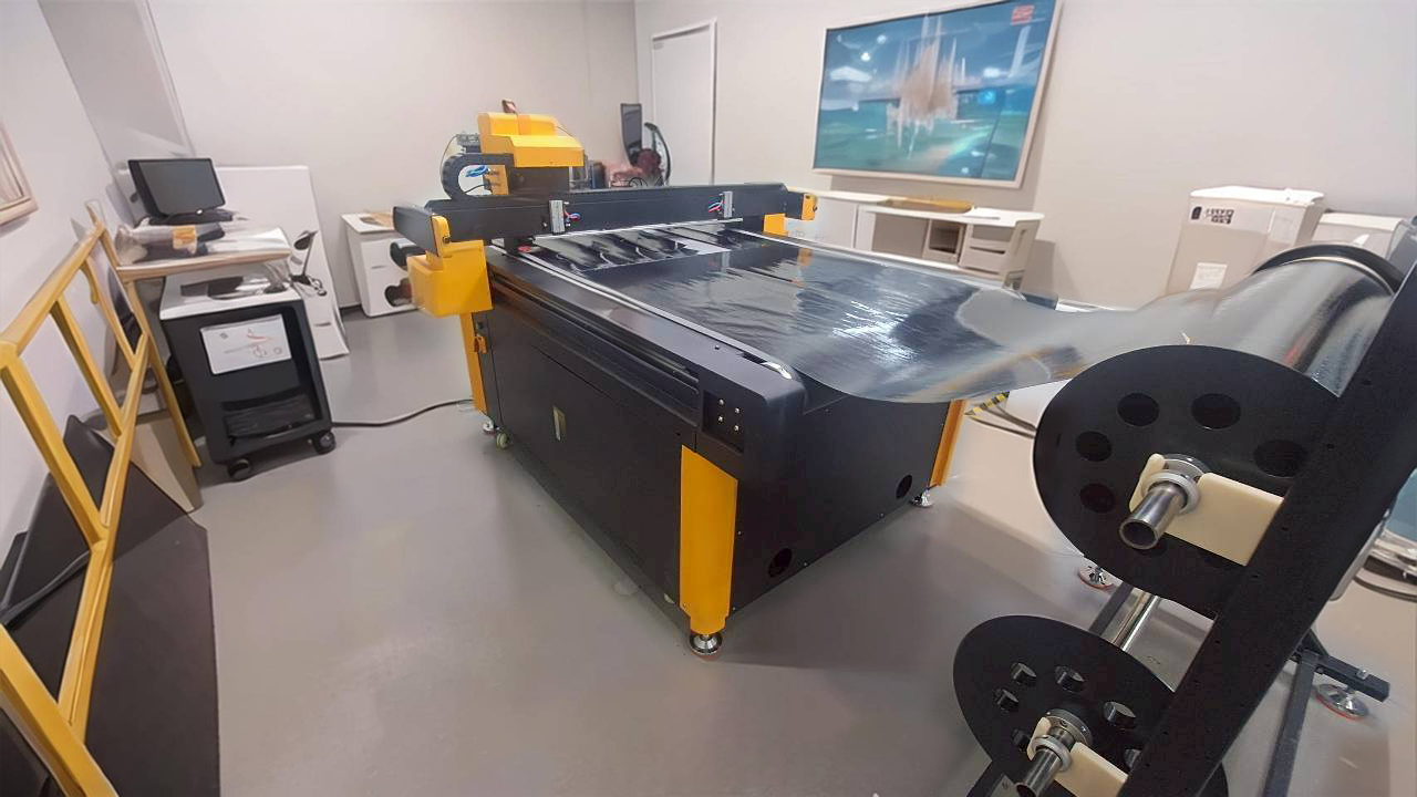 此次導入的是 大幅面 2000×5000mm 平台切割機,為了滿足客戶 大尺寸材料加工 與 連續作業效率 的需求,特別配備了 輸送檯面設計。這樣的配置,能大幅提升生產流暢度與自動化加工能力,協助客戶在大量訂單與多樣化產品需求中保持高效生產。