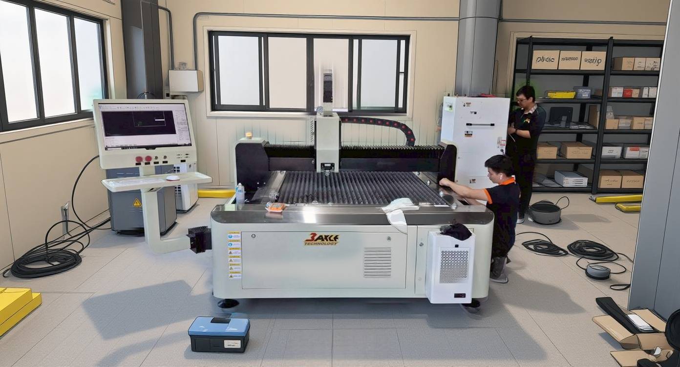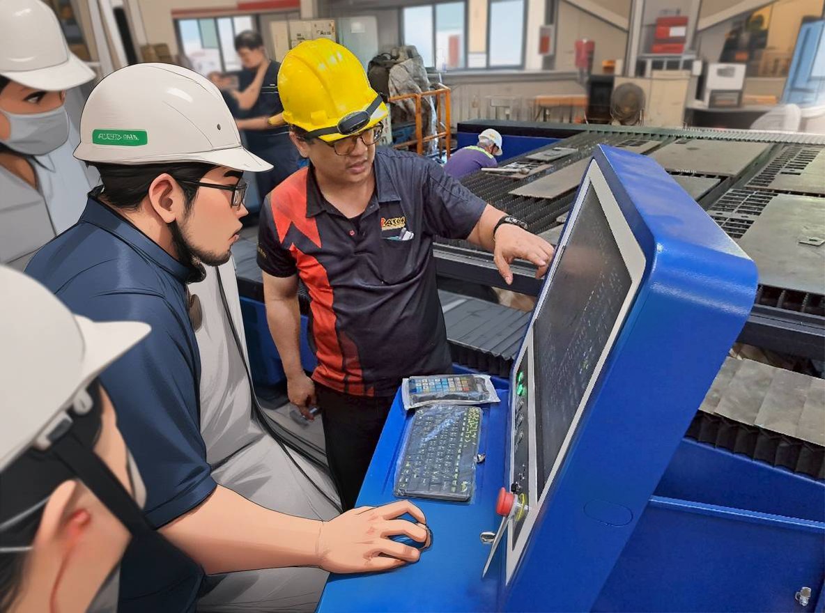 今日工程師團隊前往中部客戶端進行設備安裝與操作教學,本次安裝的是 3000mm × 1500mm加工範圍、搭配 1500W光纖雷射切割系統