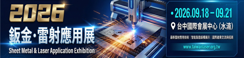 1809月 2026 鈑金·雷射應用展 2026 鈑金·雷射應用展✔️ 日期:2026年9月18日至21日✔️ 時間: 10:00-17:00✔️ 地點:臺中國際會展中心✔️ 地址:臺中市西屯區黎明路三段1000號✔️ 展位: